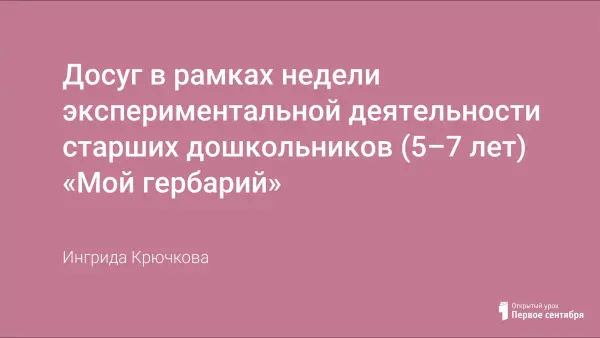 В рамках недели экспериментальной деятельности старших дошкольников проведен досуг «Мой гербарий».