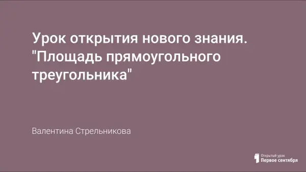 Задача урока: научить находить площадь прямоугольного треугольника.