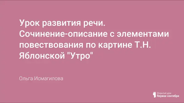 Урок является продолжением работы по развитию речи в 6-х классах общеобразовательной школы. Урок проводится как сочинение-описание с элементами повествования.