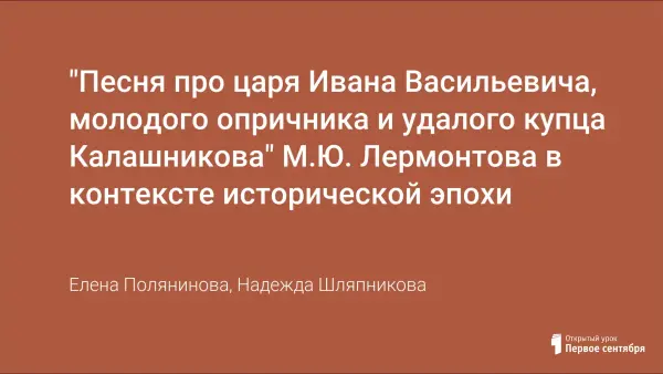 "Песня про царя Ивана Васильевича, молодого опричника и удалого купца Калашникова" М.Ю. Лермонтова в контексте исторической эпохи