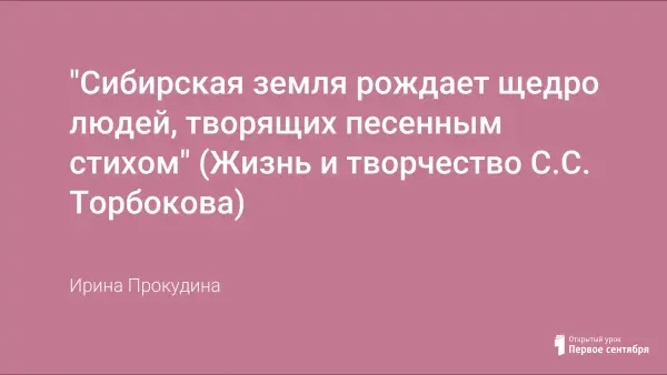 Разработка занятия элективного курса "Литература Кузбасса" по использованию регионального компонента представляет собой обзор жизни и творчества самобытного шорского поэта С.С. Торбокова. Материал занятия знакомит учащихся с художественным миром поэта, расширяет представление о законах стихосложения, воспитывает любовь к родной земле. На занятии ребята работают с литературоведческими терминами, составляют синквейн, делают анализ подстрочника и перевода.