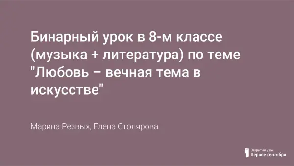 Бинарный урок в 8-м классе (музыка + литература) по теме "Любовь – вечная тема в искусстве"