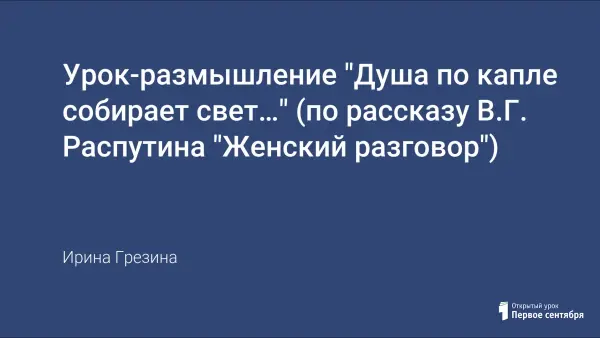 Урок предназначен для учащихся 9–10-х классов. Это урок изучения нового и обобщения знаний учащихся. Групповая форма работы позволяет формировать у учеников умение высказывать свою точку зрения, выполнять задания творческого характера. Компьютерная презентация помогает определить стиль писателя, особенность речи героев, проникнуть во внутренний ритм рассказа «Женский разговор».
