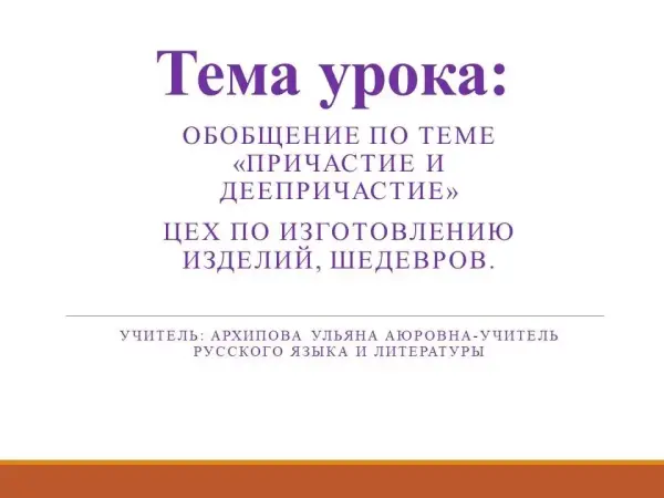 К уроку по русскому языку представлена презентация по теме "Обобщение по теме «причастие и деепричастие»".