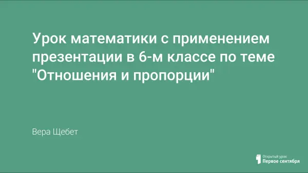 Зрительное восприятие темы через презентацию позволяет успешно усвоить материал. Предлагаемая презентация используется на нескольких уроках в 6-м классе по теме «Отношения и пропорции».