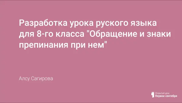 Разработка урока руского языка для 8-го класса "Обращение и знаки препинания при нем"