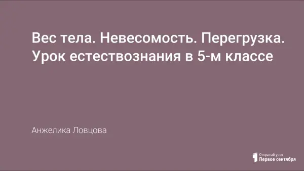К уроку физики в 5-м классе представлена презентация по теме "Вес тела. Невесомость. Перегрузка".