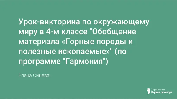 Форма проведения - урок-викторина. Цели урока - обобщить и систематизировать знания по темам: горные породы и полезные ископаемые; проверить знания понятий: горные породы, полезные ископаемые.