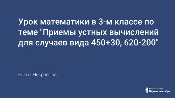 На уроке отрабатываются приёмы вычислений, основанные на знании десятичного состава трёхзначных чисел. Развивается произвольность внимания, аналитико-синтетическая деятельность учащихся и формируется навык самостоятельного построения умозаключений.