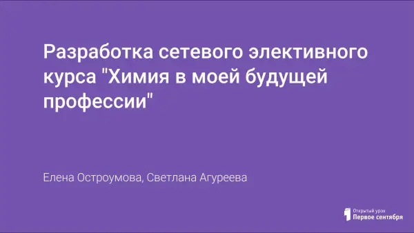 Разработка сетевого элективного курса "Химия в моей будущей профессии"