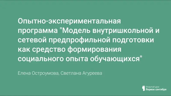 Опытно-экспериментальная программа "Модель внутришкольной и сетевой предпрофильной подготовки как средство формирования социального опыта обучающихся"