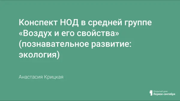 Цель: формирование представлений о воздухе, его свойствах и значении.