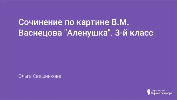 На уроке у учащихся формируется умение составлять художественное описание; показывается отличие картины от иллюстрации, выделять микротемы в описании, составлять план и придерживаться его в составлении текста.