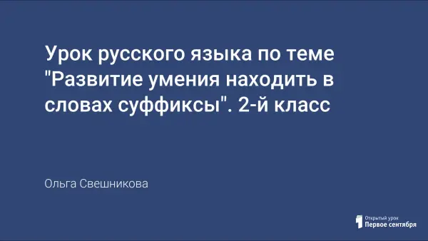 На занятии обучающиеся открывают новые знания по теме «Развитие умения находить в словах суффиксы». Введение в тему занятия происходит через создание проблемной ситуации.
