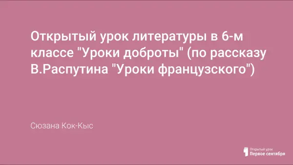 Цели урока: показать, какие нравственные проблемы поднимает автор рассказа; попытаться вызвать у учеников отклик на эти проблемы в ходе проблемного диалога через просмотр видеофрагментов экранизации фильма по рассказу В.Г.Распутина «Уроки французского»; раскрыть содержание понятия духовные ценности, добра; развивать навыки монологической речи, анализ эпизодов.