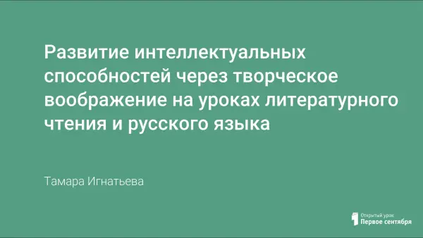 Чем больше развит мир фантазии ребенка, тем выше его интеллект. На уроке литературного чтения каждому ребенку нужно дать почувствовать, что он тоже может "творить", сначала подбирая рифмы к словам, затем сочиняя загадки, а уж потом - стихотворения. Уроки русского языка тоже должны приучать ребенка самостоятельно мыслить и развивать его творческое воображение.