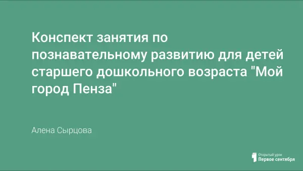 Представлен конспект занятия по познавательному развитию для детей старшего дошкольного возраста о г.Пенза.