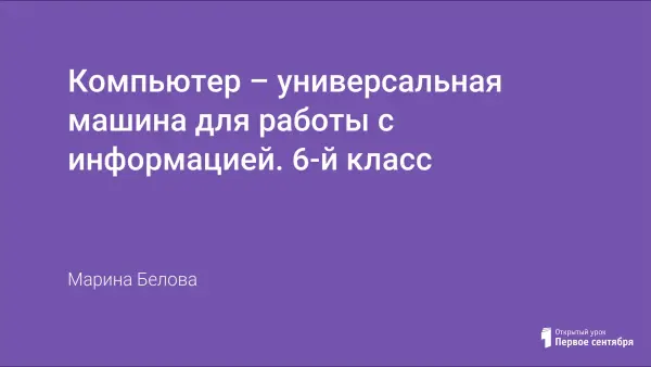 На уроке актуализируется основной материал, изученный в течение предыдущего учебного года: информатика как наука о способах хранения, обработки и передачи информации; аппаратное и программное обеспечение компьютера; компьютер как универсальная машина для работы с информацией. Экскурс в историю вычислительной техники.
