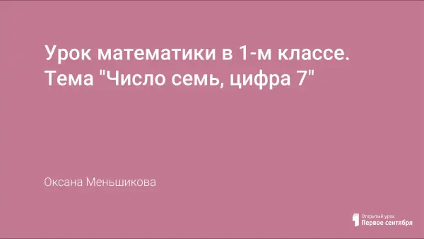 Урок изучения нового материала. Цель урока: сформировать у учащихся представление о числе 7, помочь усвоить состав числа 7, научить писать цифру 7, развивать умение анализировать, выделять главное, сравнивать.