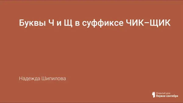Разработку по теме «Буквы ч-щ в суффиксе чик-щик» можно использовать на уроке русского языка в 6 классе. Ход и содержание урока ориентированы на освоение условия выбора букв ч-щ в данном суффиксе. Формы и методы работы, применяемые на уроке, направлены на развитие умений сравнивать и рассуждать, обобщать, делать выводы. К уроку прилагается презентация, которой можно воспользоваться на этапах объяснения и закрепления изучаемого материала.