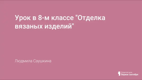 Урок помогает сформировать навыки отделки вязаных изделий в ходе работы и показать практическое применение отделки, прививать эстетические навыки в оформлении вязаных изделий, развивать познавательные процессы, мелкую моторику рук, воспитывать аккуратность, внимательность, самостоятельность.