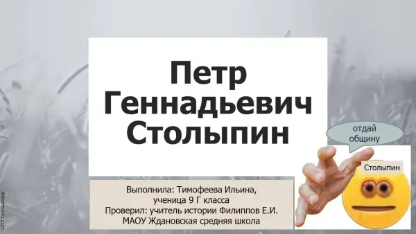 Столыпин вошел в историю как реформатор. Он провозгласил курс социально-политических реформ, включавший широкую аграрную реформу, главным содержанием которой было введение частной крестьянской земельной собственности. Под его руководством был разработан ряд крупных законопроектов, в том числе по реформе местного самоуправления, введению всеобщего начального образования, о веротерпимости. Проведенные им реформы позволили России в канун первой мировой войны за короткий срок выйти на пятое место в мире по темпам экономического роста, создать благоприятный климат для промышленности и предпринимательства.