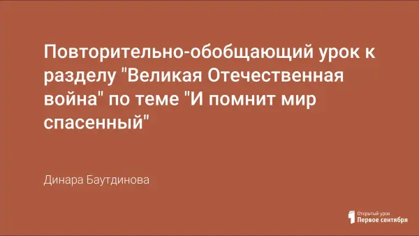 Урок направлен на то, чтобы углубить и расширить знания учащихся об участниках войны, об их бессмертном подвиге. В качестве опережающего задания к уроку учащиеся должны изучить соответствующие источники, литературу, в том числе, поэзию. Проведение урока в игровой форме позволяет стимулировать познавательный интерес учащихся к истории Великой Победы.