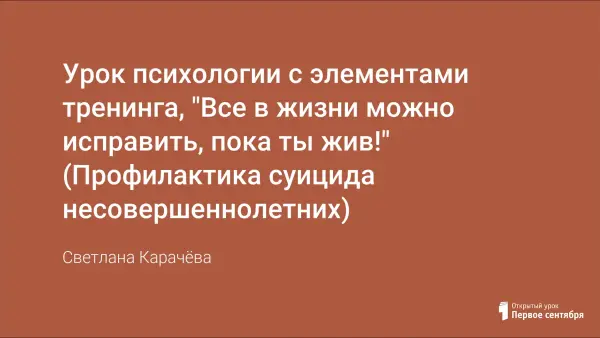Данный урок психологии способствует профилактике суицида несовершеннолетних, позволяет подросткам осознать ценность жизни, приобрести уверенность в себе, преодолевая трудности, развить навыки общения и взаимодействия, выработать способы помощи суицидентам.