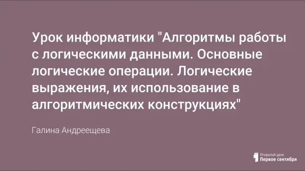 Данный урок входит в состав раздела "Алгоритмы и исполнители". На этом уроке, как на прочих уроках информатики, формируются и развиваются в различной степени определенные ключевые компетенции. На уроке происходит знакомство учащихся с основными логическими операциями, логическими выражениями и использованием логических выражений в алгоритмических конструкциях ветвления и повторения, закрепление навыка составления сложных логических выражений и определения их истинности.