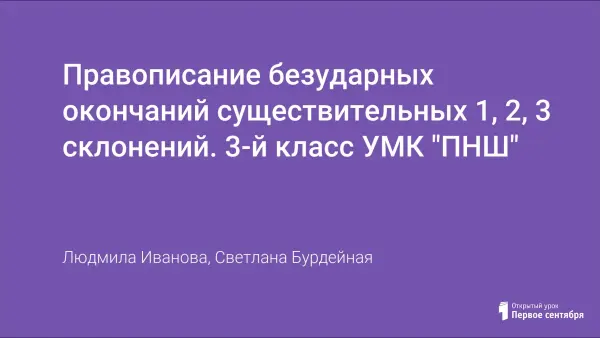 Правописание безударных окончаний существительных 1, 2, 3 склонений. 3-й класс УМК "ПНШ"