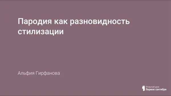 Урок составлен по программе А.И. Горшкова "Основы русской словесности. От слова к словесности. 10–11-е классы" (раздел "Формы субъективации авторского повествования"). Урок-исследование, формирующий умение определять жанрообразующие признаки пародии, различать стилизацию и пародию. Результатом урока стало создание собственных пародий на известные произведения С.Есенина, В.Маяковского, К.Чуковского.