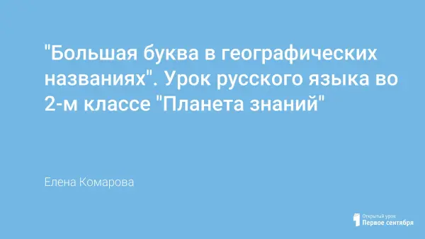Урок направлен на отработку навыков в написании заглавной буквы в именах собственных. На уроке использованы приёмы фронтальной, индивидуальной, групповой работы и работы в парах. Для каждого этапа работы на уроке подготовлены слайды, выполненные в PowerPoint.