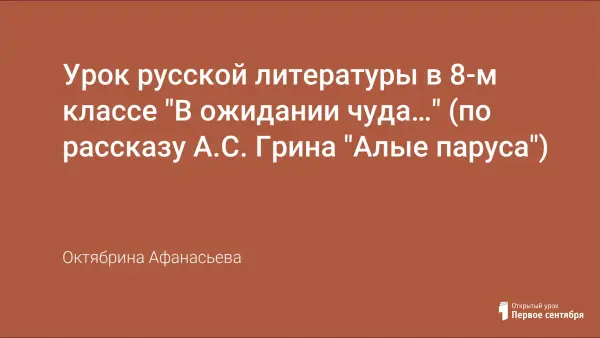 Урок русской литературы в 8-м классе "В ожидании чуда…" (по рассказу А.С. Грина "Алые паруса")