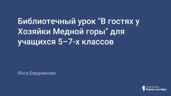 Библиотечный урок "В гостях у Хозяйки Медной горы" для учащихся 5–7-х классов