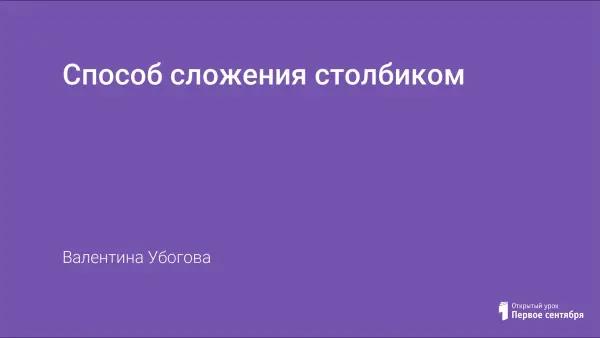 Цели урока: познакомить со способом сложения столбиком с переходом через десяток; развивать умения наблюдать, анализировать, делать выводы; учить культуре общения ученика с учителем, воспитывать положительные качества личности ученика: аккуратность, умение преодолевать трудности.