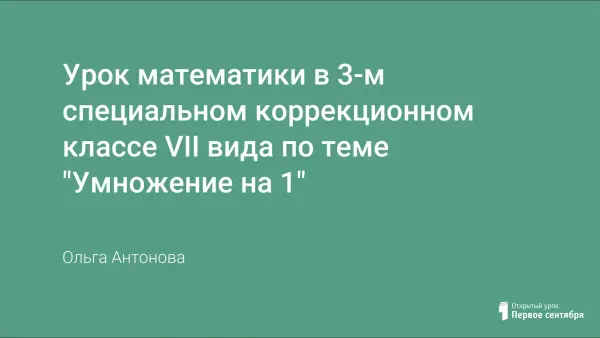 На уроке рассматриваются правила умножения на 1, совершенствуются вычислительные навыки. Урок способствует развитию умения решать задачи на нахождение площади прямоугольника, словесно-логического мышления на основе операций анализа, синтеза, формированию интереса к предмету.