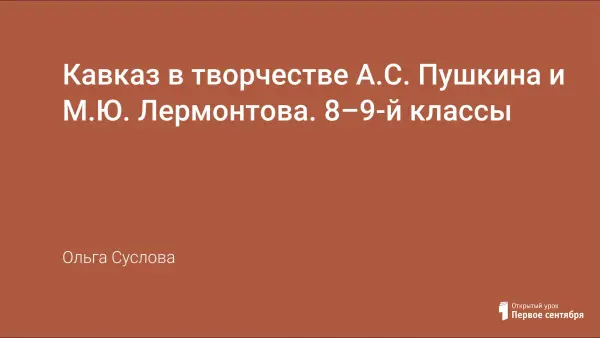 Урок построен на сравнительном анализе стихотворений о Кавказе А.С. Пушкина «Монастырь на Казбеке» и М.Ю. Лермонтова «Крест на скале». Ученики анализируют образы, художественные средства и чувства лирического героя. Выстраивают гипотезу. Урок целесообразнее проводить в 9-м классе после прохождения тем о творчестве А.С. Пушкина и М.Ю. Лермонтова.