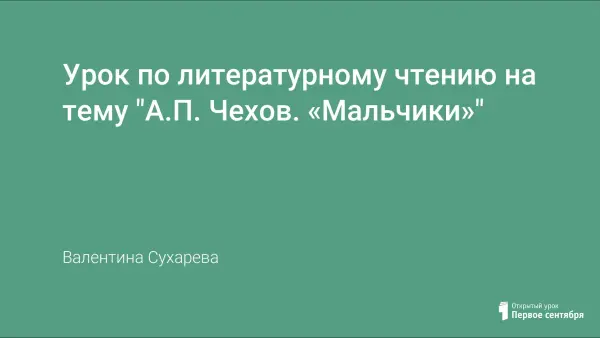 Урок знакомит учащихся с жизнью и творчеством А.П. Чехова. Презентация «Биография А.П. Чехова» является привлекательным и ярким моментом урока, вызывает положительные эмоции, поддерживает интерес к предмету, расширяет кругозор. Дети учатся сами ставить вопросы к тексту, размышляют о причинах побега мальчиков, рисуют словесные портреты мальчиков.