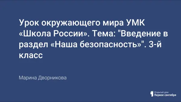 Цель урока: выявить опасные для человека места, опираясь на имеющиеся знания детей; составить план-маршрут (действий) при изучении раздела «Наша безопасность».