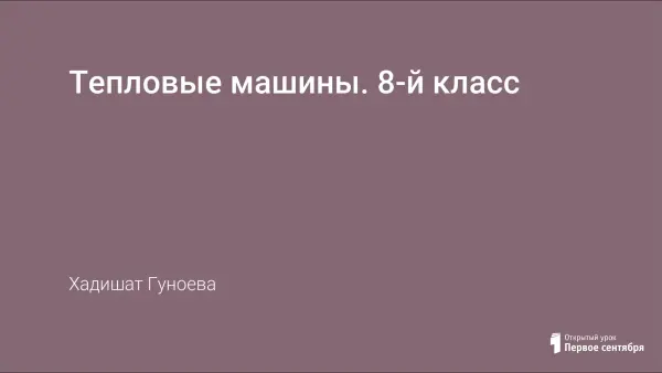 Урок проводится с целью получения представлений о принципе работы некоторых видов тепловых машин, формирования понятия коэффициента полезного действия, умения объяснять физические опыты и явления. Материал урока позволяет установить связь между изученными понятиями и явлениями окружающей действительности. На уроке также обсуждаются проблемы использования тепловых двигателей в экологическом аспекте; воспитания чувства ответственности, умения работать в коллективе.