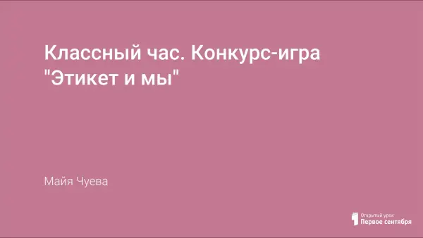 Цель классного часа - повышение уровня общей культуры студентов и развитие навыков пользования формами этикета. Классный час проводится в форме игры.