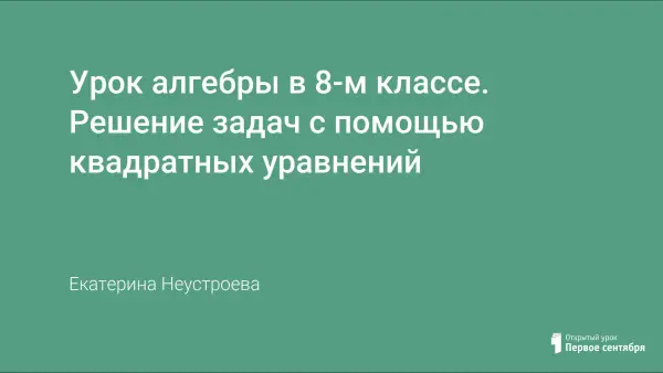 Урок помогает закрепить математические знания учащихся по теме “Решение задач с помощью квадратных уравнений” с учетом их индивидуальных особенностей. Идёт процесс формирования умения самостоятельной работы с учебником.
