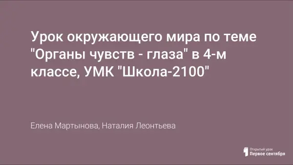 Урок окружающего мира по теме "Органы чувств - глаза" в 4-м классе, УМК "Школа-2100"