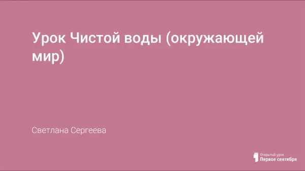 Урок закрепляет у учащихся знания, полученные на уроках окружающего мира; развивает познавательную активность, коммуникативность. Цель урока: донести до сознания детей понимание бережного отношения к воде к жизненно важному для здоровья человека ресурсу и драгоценному дару природы России.