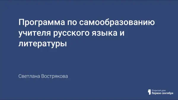 Необходимость создания программы по самообразованию актуализирована практикой педагогической профессиональной деятельности Востряковой С.А, которая носит инновационный творческий характер. Существующие стандарты профессионального мастерства требуют личной заинтересованности и целенаправленной активности педагога по формированию персонального «образовательного маршрута» профессионального саморазвития. «Образовательный маршрут» профессионального саморазвития преподавателя Востряковой С.А. раскрывает системный комплексный характер деятельности педагога в сфере самообразования, в том числе в определении направлений, целей, задач, источников и форм самообразования, а также в организации самого процесса развития педагогических профессиональных компетенций.