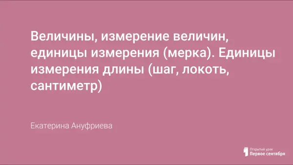 Урок знакомит с такими понятиями, как: величина, измерение величин, единица измерения (мерка). На уроке устанавливается общий принцип измерения длин отрезков и зависимость между результатами измерения величины и меркой. Ученики знакомятся с различными единицами измерения длины (шаг, локоть, сантиметр и т.д.) и учатся практически измерять длину этих единиц.