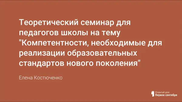 Содержание материала теоретического семинара направлено на повышение профессиональной грамотности педагогов школы в вопросах компетентностного подхода в образовательном процессе. Раскрывается содержание и практическое значение таких ключевых компетенций как: информационная, коммуникативная, проблемная, корпоративная, исследовательская, речевая.