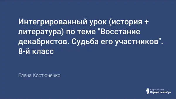 На уроке создается картина восстания декабристов в 1825 г. Рассматриваются причины, ход восстания, итоги, прослеживаются судьбы участников после его поражения. Учащиеся размышляют над тем, что побудило жен декабристов отправиться в Сибирь вслед за мужьями; работают со схемой восстания, изучают текст «Манифеста к русскому народу», обращаются к поэме Н.Некрасова «Русские женщины».