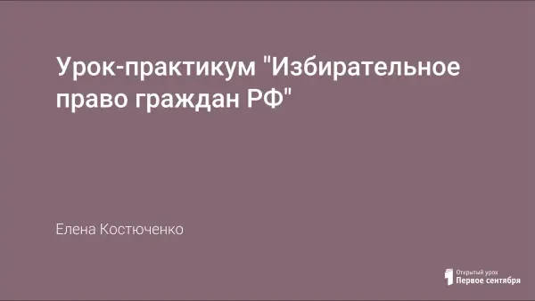 Цель урока: формирование комплексного представления у учащихся об избирательном праве как одном из важнейших признаков парламентаризма в РФ.