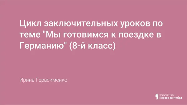 Основная цель урока – активизировать изученный материал по теме, научить планировать поездку в Германию, выбирать место проживания и экскурсионную программу заранее через Интернет, предоставить каждому ученику возможность проявить активность и применить свои знания языка в реальных условиях, что значительно повысит мотивацию в изучении немецкого языка.